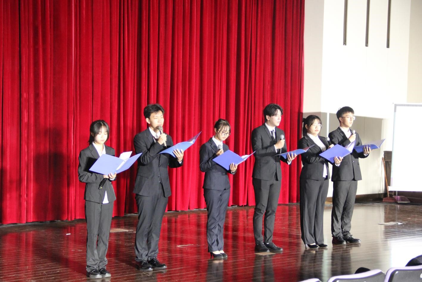 开幕式以“一份来自宪法的自我介绍”拉开帷幕。舞台上,刘佳妮同学以自述形式生动地介绍了宪法的内容与发展历程。随后,在主持人的带领下,全体同学怀着对法律的敬意与热爱,以赤诚之心向宪法庄严宣誓,振奋人心的誓词将开幕式的气氛推向了高潮。