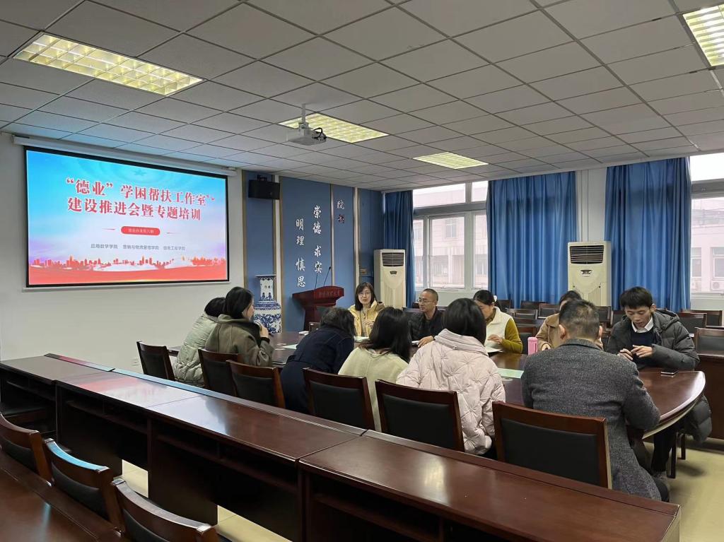 为提升辅导员工作科学化专业化水平,充分发挥辅导员工作室引领作用,12月9日上午,应用数学学院、营销与物流管理学院与信息工程学院联合举办“德业”学困帮扶工作室建设推进会暨专题培训。会议由“德业”学困帮扶工作室主持人、应用数学学院党总支副书记布丹丹主持,工作室全体成员参加会议。