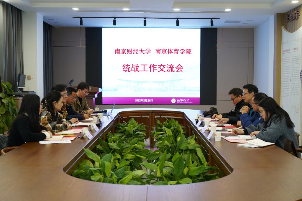 2月24日上午,南京体育学院党委常委、统战部部长许立俊,副部长刘洪磊等一行前来金年会调研统战工作,调研座谈会在仙林校区同心文化书苑召开。党委统战部全体工作人员参会。座谈会由党委常委、统战部部长吕戎主持。