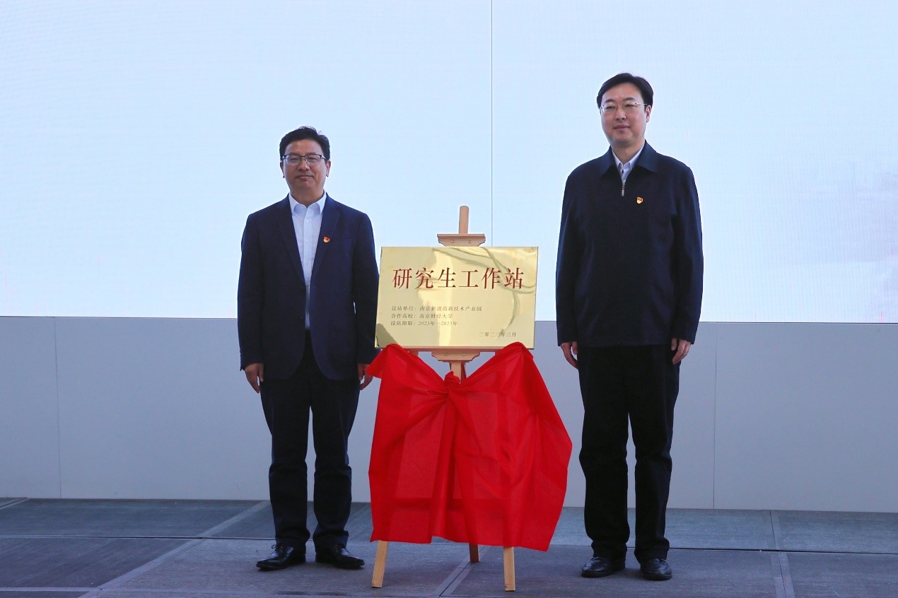 会上,MBA教育中心党支部与南京兴智科技产业发展有限公司党支部签订党建结对共建协议书。同时,MBA教育中心与南京新港高新园签订研究生工作站共建协议,并举行研究生工作站揭牌仪式。通过结对共建、共建研究生工作站等举措,进一步推动校地企资源整合,推进产学研深度融合,构建“党建共联、资源共享、互助共建、共促发展”的合作共赢新局面。最后,MBA师生前往中国(南京)智谷体验中心、南京先进激光技术研究院和南京天加能源科技有限公司实地参观学习。