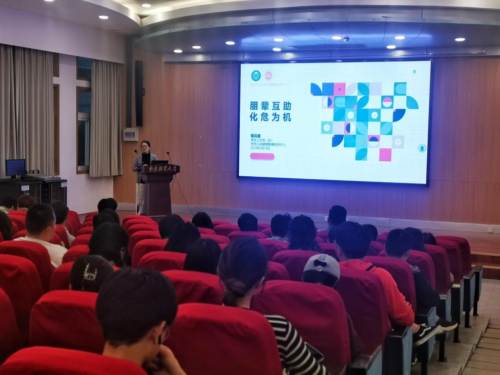 程云霞老师作了主题为“朋辈互助,化危为机”的培训,向大家介绍了学校危机干预的四级预警系统,通过实例强调了心理委员在系统中的工作职责。程云霞老师阐述了轻度抑郁、抑郁症和双相情感障碍等概念及其区别,科普了心理危机类型,并通过实际案例示范了如何在生活中准确识别危机信号并及时干预。最后,程云霞老师强调作为朋辈助人者也应该注意自我关怀。