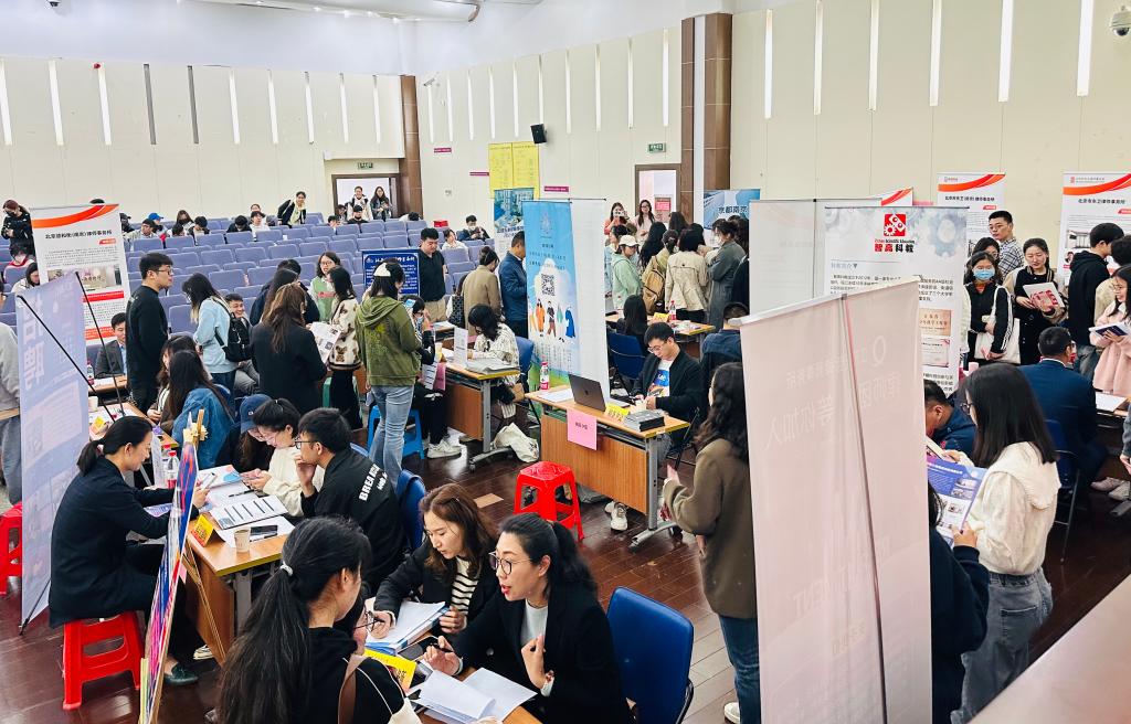 4月26日上午,法学院在仙林校区德正楼模拟法庭举办2023届毕业生春季专场招聘会。法学院院长胡宜奎、党委副书记刘英华以及毕业班辅导员到会指导,并与用人单位、学生进行亲切交流,了解用人单位招聘和学生求职情况。此次招聘会邀请了来自律所、企业、社会服务中心等不同领域的30多家用人单位参加,提供了专业匹配度较高的100多个岗位,包括律师、法务专员、法律顾问、项目社工等岗位,吸引了学院众多毕业生前来求职应聘。招聘会现场秩序井然,各招聘单位通过设立展板、发放宣传手册等方式向求职学生介绍本单位基本情况和招聘信息。毕业生们认真了解岗位情况,投递简历。现场也吸引了低年级的同学前来咨询和了解实习、兼职等岗位,提前了解就业市场需求。在多方支持下,本次招聘会不仅是一场就业求职的双选会,更是一场职业生涯规划和就业指导的现场教学课。法学院将持续加大对毕业生就业工作的推进力度,不断拓宽就业实习渠道,精准搭建人才培养交流平台,建立与广大用人单位的供需对接长效机制,不断扩展就业新空间。