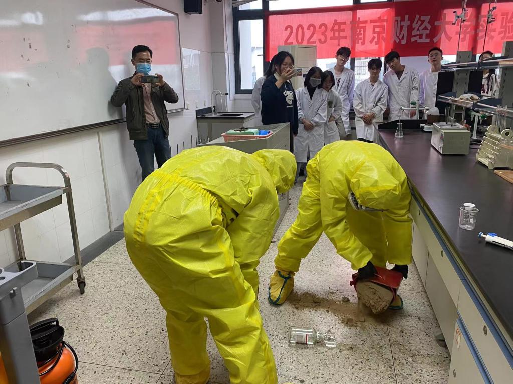 为进一步加强实验室安全管理,提升师生应对突发性实验室危险化学品泄漏的应急处置能力、实验室安全防护及应急事故的处置能力,5月24日,金年会在仙林校区工科楼开展安全培训暨安全演练活动。此次演练由教务处、科研处主办,食品科学与工程学院承办,保卫处协助,各单位负责人、主管人员代表、实验室安全管理人员、研究生导师及学生代表参加演练。