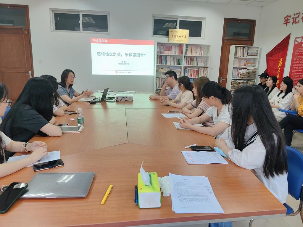 财政与税务学院在仙林校区德经楼408会议室举行“政治生日忆初心,砥砺奋进担使命”主题党日活动,为毕业生党员集体过“政治生日”。财政与税务学院党委书记陈苏、院长杨继军、各学生党支部书记,全体学生党员参加活动。活动由学院党委副书记王翔主持。全体党员重温了入党誓词。陈苏书记和杨继军院长向34名毕业生党员赠送了一份特殊生日礼物——由老师亲笔书写的党员“政治生日”贺卡。随后,院领导给毕业生党员们上了最后一堂党课。陈苏书记希望同学们牢记党员身份、坚定理想信念,走好步入社会的第一步;牢记使命、初心向党,秉持“财政助民生税收家国情”的家国情怀,以个人微光助力民生大事;志存高远、情理兼修,坚守学术底线和人生底线,发扬共产党员廉洁从业的优良意识,自觉抵制陷阱和诱惑;以仪式感促使命感,通过政治生日铭记初心使命,在未来工作中发挥专业特长,为党和国家的财税事业发展作出应有的贡献。杨继军院长寄语毕业生党员牢固树立底线意识、纪律意识,树立正确的名利观;注重团结合作、加强互利共赢,在职场中正确处理各种关系;面对挫折要有坚韧不拔、百折不挠的勇气,在锻炼中成长和进步。会议结束后,院领导和毕业生党员一起分享了生日蛋糕,并祝福毕业生们乘风破浪、一帆风顺,走出属于自己的精彩人生路。