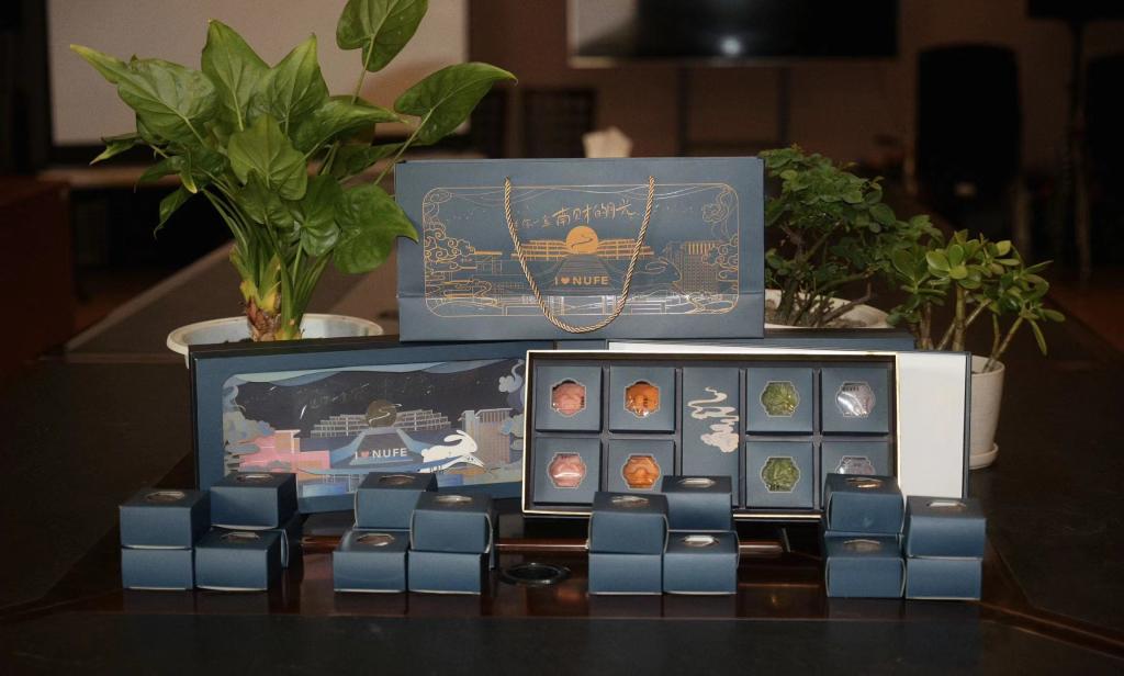 “送你一盒金年会的月光”月饼礼盒吸引了新生们驻足,艺术设计学院特意为绿色通道的受资助同学准备了月饼。月饼将金年会特色建筑与广式月饼相结合,采用八角外形,寓意吉祥、完整、幸福、长寿和健康;饼面的金年会建筑采用了立体浮雕开模技术,更好地展现建筑的立体感,整体精致且饱满。学院创业团队自主联系食品加工厂,全程监控食材选择和加工细节,进行生产和包装。环境设计2301班陈一诺同学表示:“一入学就收到学校的礼物,感受到了满满的幸福感。月饼的设计很有意思,扑面而来的设计感让我们感受到了艺术学院特有的氛围。”