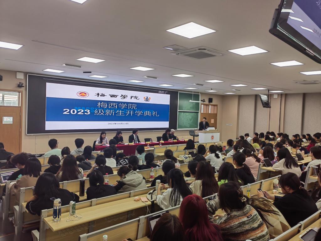 开学典礼伊始,张励行书记致辞并介绍学院相关情况。他代表学院热情欢迎2023级新“梅”子的加入,希望新“梅”子们在大学四年时光里不断充实自己、提高自己、成就自己,融汇中西、经世致用,书写属于自己的精彩故事。梅西大学校长Jan Thomas教授为同学们带来了视频寄语。她鼓励同学们充分利用大学时光,积极探索,迎接每一个挑战,与梅西学院并肩共创未来。张典(Michael Zhang)参赞致辞。他表示,梅西学院的发展建立在中新双方精诚合作的基础上,期待梅西学院的人才培养模式和培养质量能够成为国内中外合作办学的标杆。Jade Zhou女士讲话。她表示,今年梅西大学的教师们终于来到了梅西学院,和同学们进行面对面的线下教学,这十分令人激动。梅西大学教师代表Andrew Barney在发言中表示,中国是新西兰的重要国际伙伴,新方老师来华能够更好地促进双方文化交流。他希望梅西学院的学生们能从新方老师身上学到更多的知识。随后,梅西学院优秀在校生代表金工2102班吴语丝同学和新生代表大数据2302班陈奕瑄同学分别进行发言。吴语丝同学希望学弟学妹们尽快转变身份,制定目标,珍惜时光,更好地适应大学生活。陈奕瑄同学表示,将以校训精神作为行动指南,循梦而行,向阳生长,敢于追逐,敢于创造,用实际行动书写青春答卷。最后,梅西学院杨智华院长进行总结发言。她表示,课程不是大学生活的全部,同学们需要走出去,不断拓宽国际视野,激发最大潜力,学以成人、成长成才。