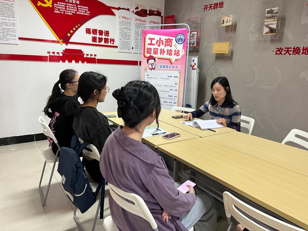 组织引领强能力。为更好服务学生成长成才,进一步提升围绕学生、关爱学生、服务学生的工作质量,10月以来,工商管理学院“红色灯塔”辅导员工作室在中苑7号站“纽扣空间”“一站式”学生社区打造了“工小商能量补给站”,工作室全体党员教师和学生党员代表于每个工作日中午驻守“一站式”学生社区,利用“纽扣空间”学生公寓党建工作站,将学生党建与学生心理、专业、实践有机结合,面对面对学生进行思想引导、学业辅导、心理疏导、就业指导,实时解决学生们的现实问题和困惑,让学生们享受到送上门的“个性化”服务。通过持续开展“工小商能量补给站”系列活动,重点关注学生在学习、生活、思想上的重点、痛点、难点问题,建立与学生的常态化交流互助机制,满足学生个性化需求,为学生提供“一站式”学生社区的全方位关怀,让学生感受家的温暖,真正打通育人管理的“最后一公里”。