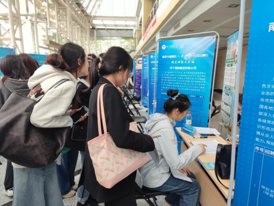 本次招聘会邀请了中信证券、中建八局、江苏省新时代工贸公司等三十家建邺区属地企业参会,覆盖文化、贸易、教育、计算机、金融等多个行业,现场提供1200个工作岗位。企业招聘专员与毕业生面对面交流,耐心介绍岗位需求、薪资待遇、个人成长等情况。同学们结合自身求职目标积极投递简历,参加现场面试。同时,招聘现场还开设了线上投递简历渠道,为无法参会的毕业生提供求职渠道。