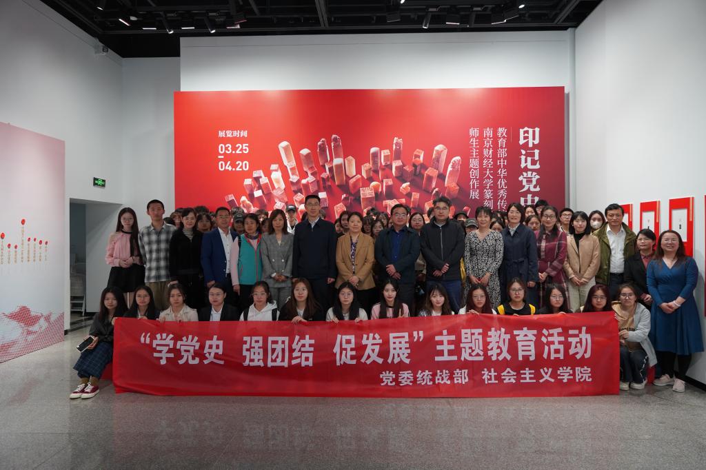 为落实《金年会jinnianhuicom关于推动党史学习教育常态化长效化的实施方案》部署要求,进一步推动党史学习教育走深走实,根据省委教育工委“同心共筑教育梦”和省民宗委等部门“铸牢中华民族共同体意识·高校在行动”系列活动方案,4月18日下午,党委统战部组织各民主党派、统战团体成员代表和各学院民族学生代表参观正在展出的“印记党史——教育部中华优秀传统文化金年会jinnianhuicom篆刻传承基地师生主题创作展”。艺术教育中心教授何连海介绍了本次展览组织和筹备情况。