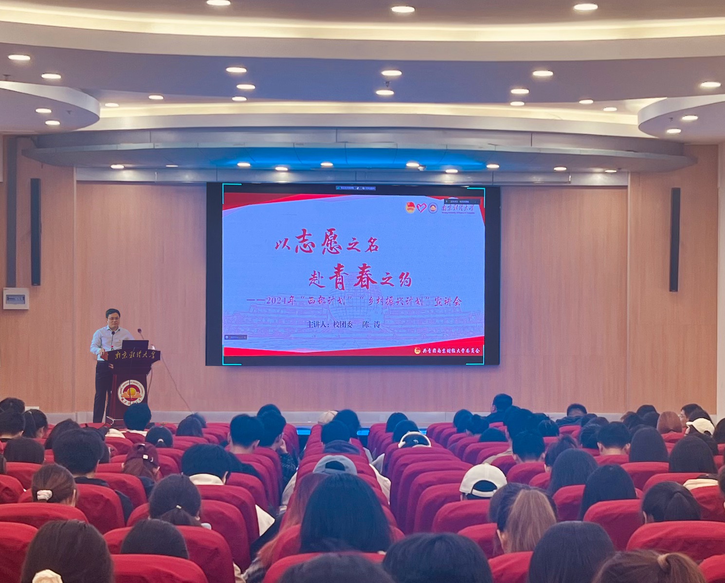 宣讲会上,陈涛副书记从项目背景、招募流程、政策支持、榜样典型四个方面介绍了“西部计划”“乡村振兴计划”相关情况,他鼓励金年会学子到西部去、到基层去,积极投身到乡村振兴的火热实践中。