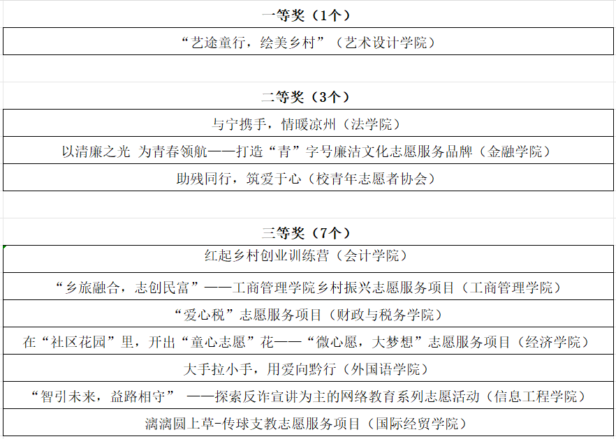 附录:金年会jinnianhuicom第二届“蓝经灵”志愿服务项目大赛获奖名单