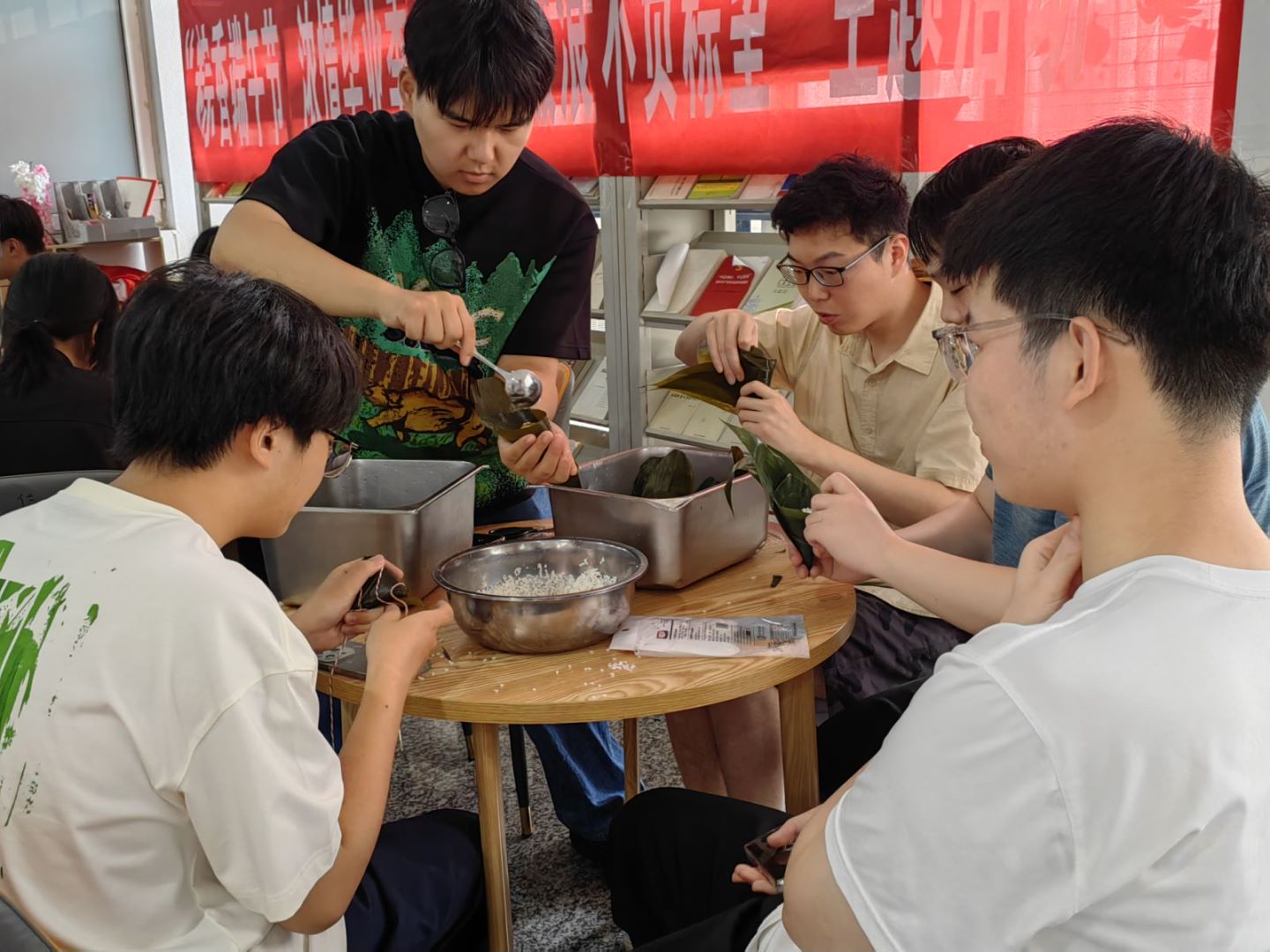 信息工程学院开展了“粽香端午浓情毕业季——乘风破浪不负粽望”主题活动,学院领导老师、退休老同志与毕业生代表、少数民族同学代表欢聚一堂,共度端午佳节、共叙师生情、共话民族团结。卷粽叶、填蜜枣、包粽米、系粽绳……毕业生们在宿管阿姨的指导下包出一个个饱满的粽子,现场其乐融融。放香料、缝荷包、编五彩绳……同学们制作出一个个香气宜人的香囊。
