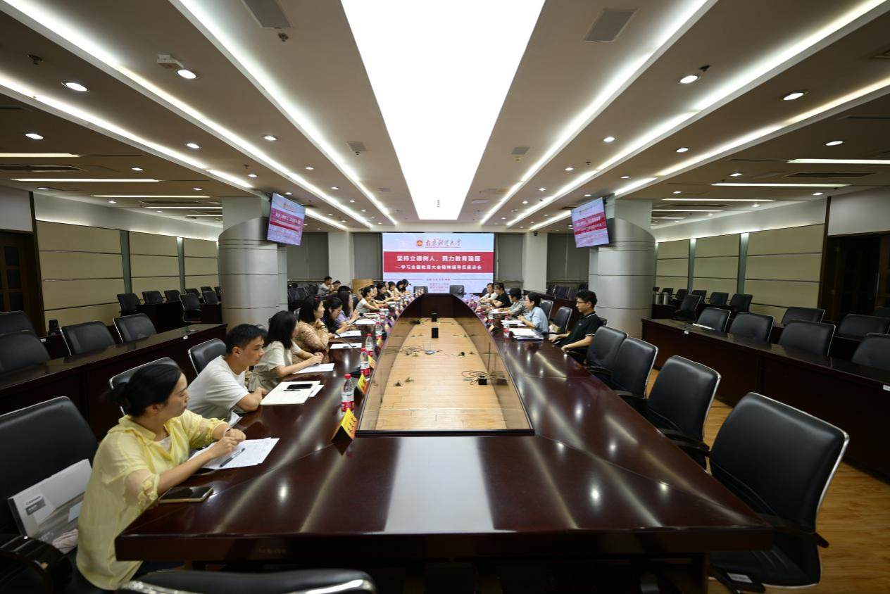 9月13日下午,党委学生工作部、辅导员发展中心在仙林校区行政楼16楼会议室召开全国教育大会精神辅导员学习交流座谈会。党委学生工作部部长、学生处处长韩力争,党委学生工作部副部长、学生处副处长袁怡琨,法学院党委副书记刘英华,应用数学学院党委副书记孙晓飞,财政与税务学院党委副书记王翔和各学院辅导员代表参加座谈会。会议由袁怡琨副部长主持。