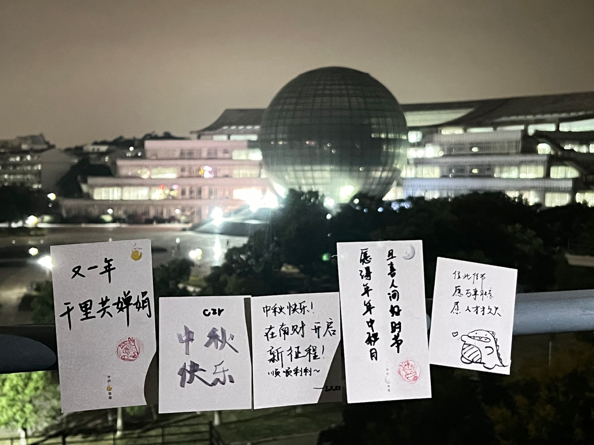 工商管理学院举办了“‘工’赴月夕,‘商’赏月情”中秋主题活动。同学们制作了多彩多样的灯笼,寓意着团圆、幸福与吉祥;开展了强国知识答题竞赛、中秋传统文化经典游戏“猜灯谜”等活动。最后,同学们一起来到教学楼外欣赏中秋圆月。