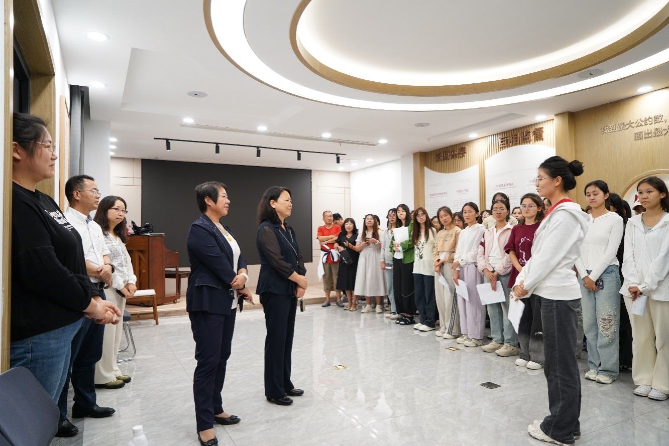 李玉琴部长向师生送上慰问品,并与他们深入交谈,共话民族团结,凝聚奋进力量。韩力争处长慰问了在场学生,了解他们进校以来的学习和生活情况。合唱团中3位少数民族学生与大家分享了他们入校以来的学习生活体会,感谢学校对少数民族学生的尊重与关爱。他们纷纷表示,到金年会学习,让自己更好地融入中华民族大家庭。此次参加合唱团,更让他们有了向全校展示自己的机会,将积极践行中华民族共同体意识,加强知识学习和品德修养,为维护民族团结贡献青春力量。