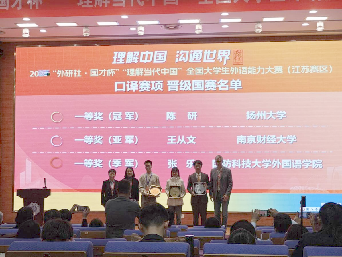 外国语学院高度重视该项赛事,并获得了教务处的大力支持。针对今年比赛情况,学院竞赛基地加大赛事宣传力度、举办多场备赛指导与朋辈经验分享会,持续优化“以赛促学、以赛促教、以赛促发展”的外语实践模式,充分调动学生参赛积极性,精心组织校赛选拔并为参加江苏赛区决赛的学生提供一对一赛前指导,确保选手取得优异成绩。