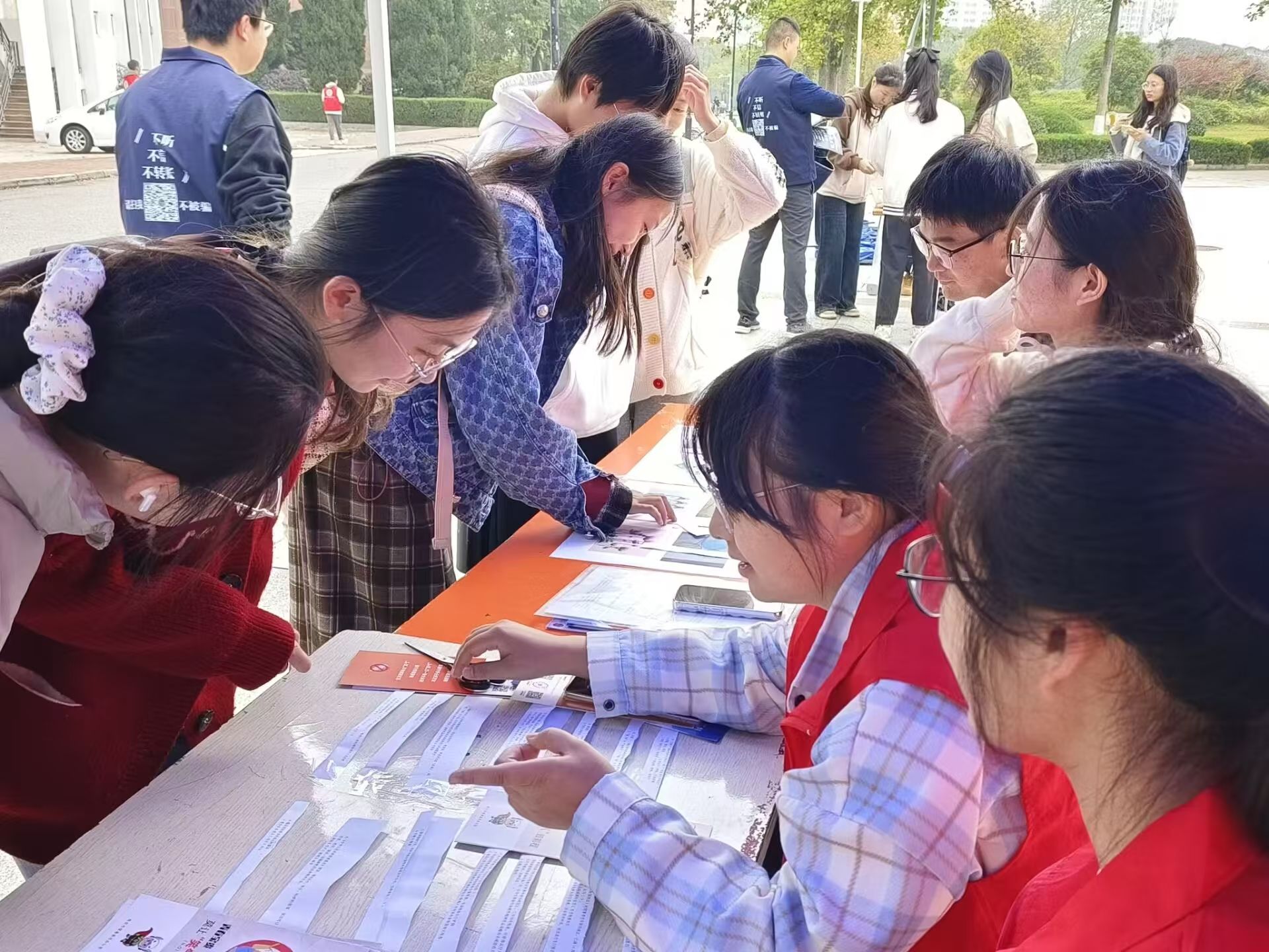 11月13日,校团委志愿者工作部、校青年志愿者协会联合南京市公安局栖霞分局禁毒大队、反诈中心在仙林校区中苑食堂广场开展禁毒反诈宣传活动。本次活动以“禁毒反诈进校园,筑牢安全双防线”为主题,包括科普宣传、趣味互动、有奖问答等多个环节,吸引了500余名学生参与。