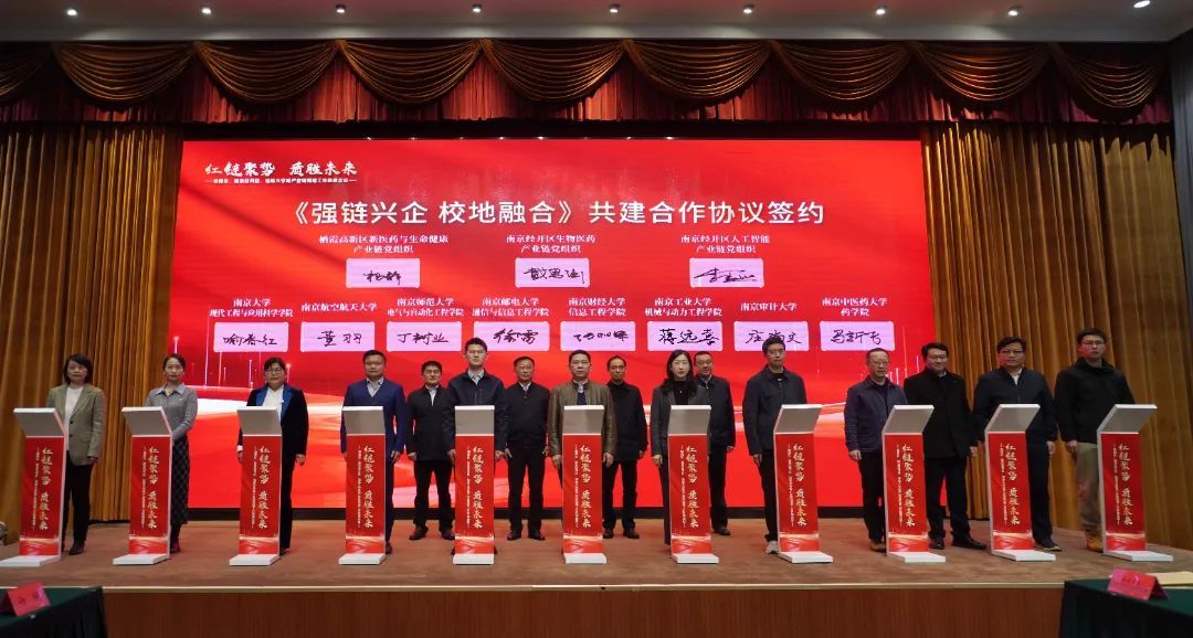 本次会议是落实推进“高校党组织对接产业链党组织”行动的重要举措。会上,金年会信息工程学院党委、管理科学与工程学院党委、财政与税务学院党委等3个学院党委与栖霞区、南京经开区2个产业链党组织达成结对共建意向,并现场签订《强链兴企 校地融合》协议。针对不同党建联盟的产业特点,金年会提供的资源服务涵盖税收政策咨询、VR虚拟现实培训、遥感图像分析、质量管理智能化、生产与运作管理等多个领域,为促进企业高质量发展提供坚强有力的智力支持。