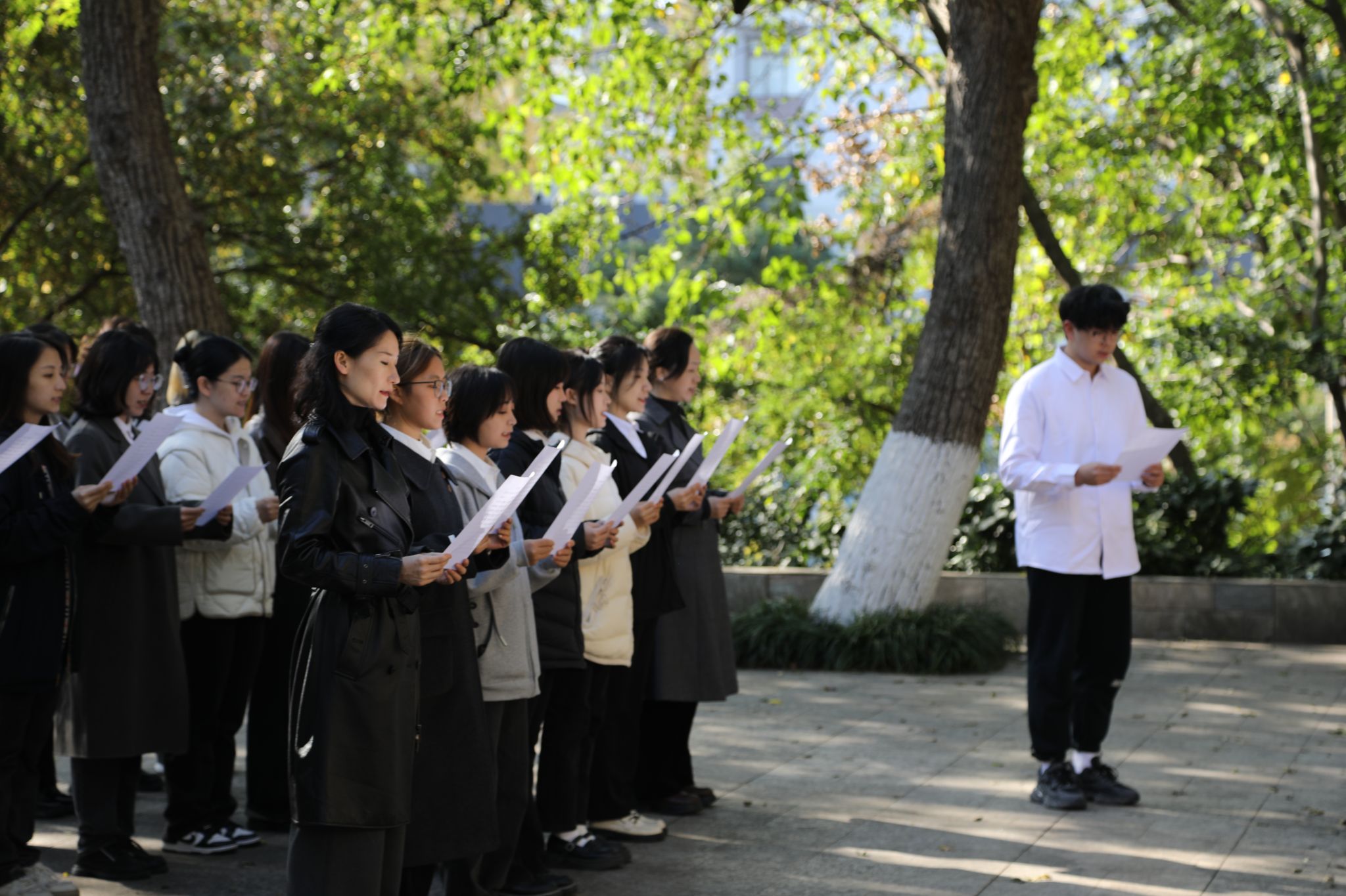 新闻学院师生前往侵华日军南京大屠杀遇难同胞丛葬地,开展“勿忘国耻,圆梦中华”主题活动。师生们在碑前默哀,为南京大屠杀遇难同胞敬献鲜花。学院党委书记陈丹现场开展党课教学,希望青年学子不忘历史惨痛教训,汲取奋进力量;师生集体朗诵《和平宣言》;设置“国家公祭日和平许愿签名墙”,同学们郑重签名并写下对和平的祈愿。推出微党课“共担使命,同祀国殇——南京大屠杀死难者国家公祭日设立10周年”。学院教工党支部青年教师向莲君讲述国家公祭日设立的过程,带领青年学生深入领会国行公祭的意义,理解南京大屠杀历史如何从一城之痛、一国之殇,成为全世界、全人类的集体记忆。