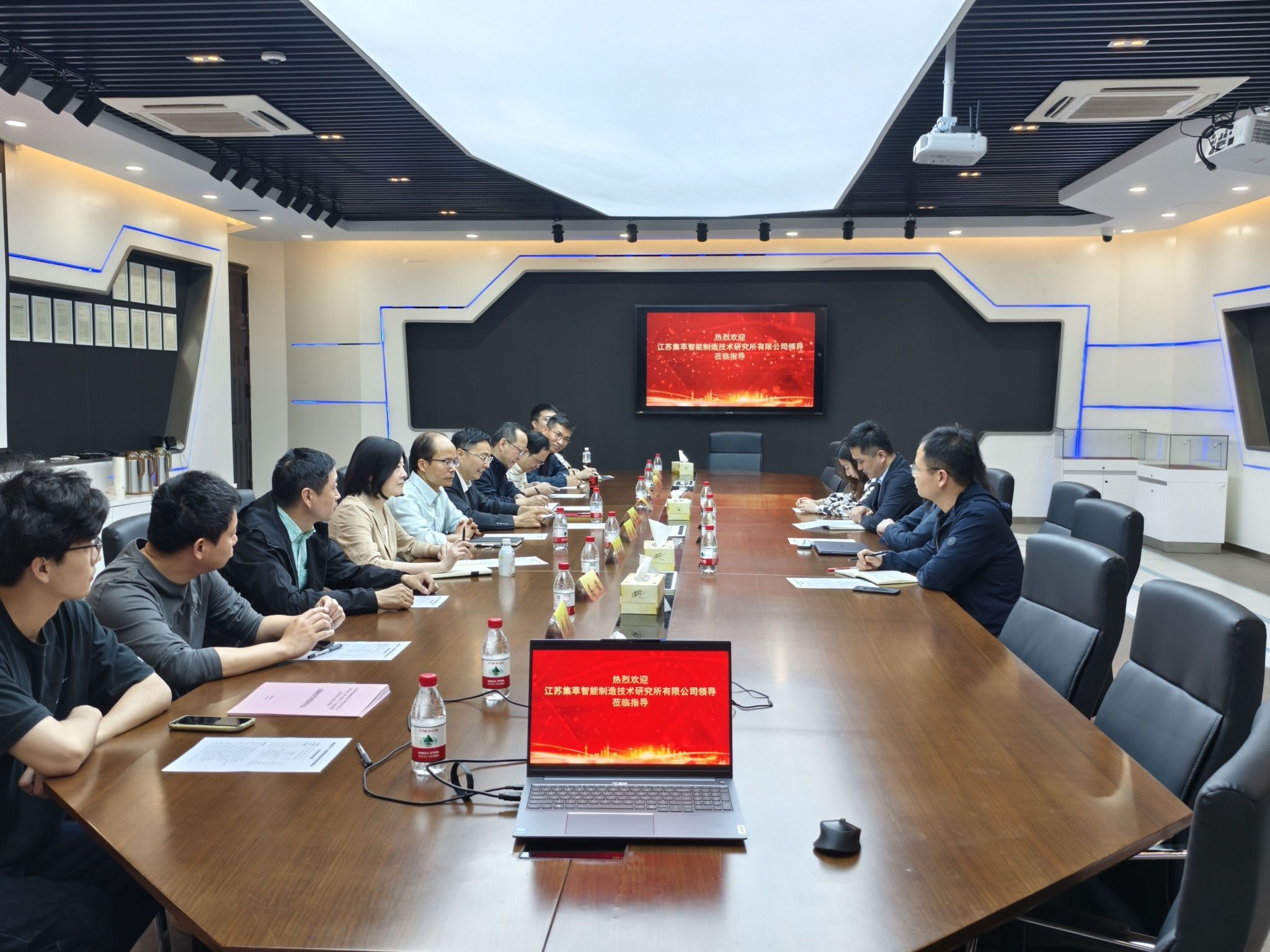 骆敏舟董事长介绍了集萃智能发展历程,以及在人形机器人、具身智能等方面的技术突破。计算机与人工智能学院院长黄健、经济学院经济统计系副主任陈海清分别就学院发展情况、科研平台建设、相关科研成果以及人才培养情况等进行了介绍。