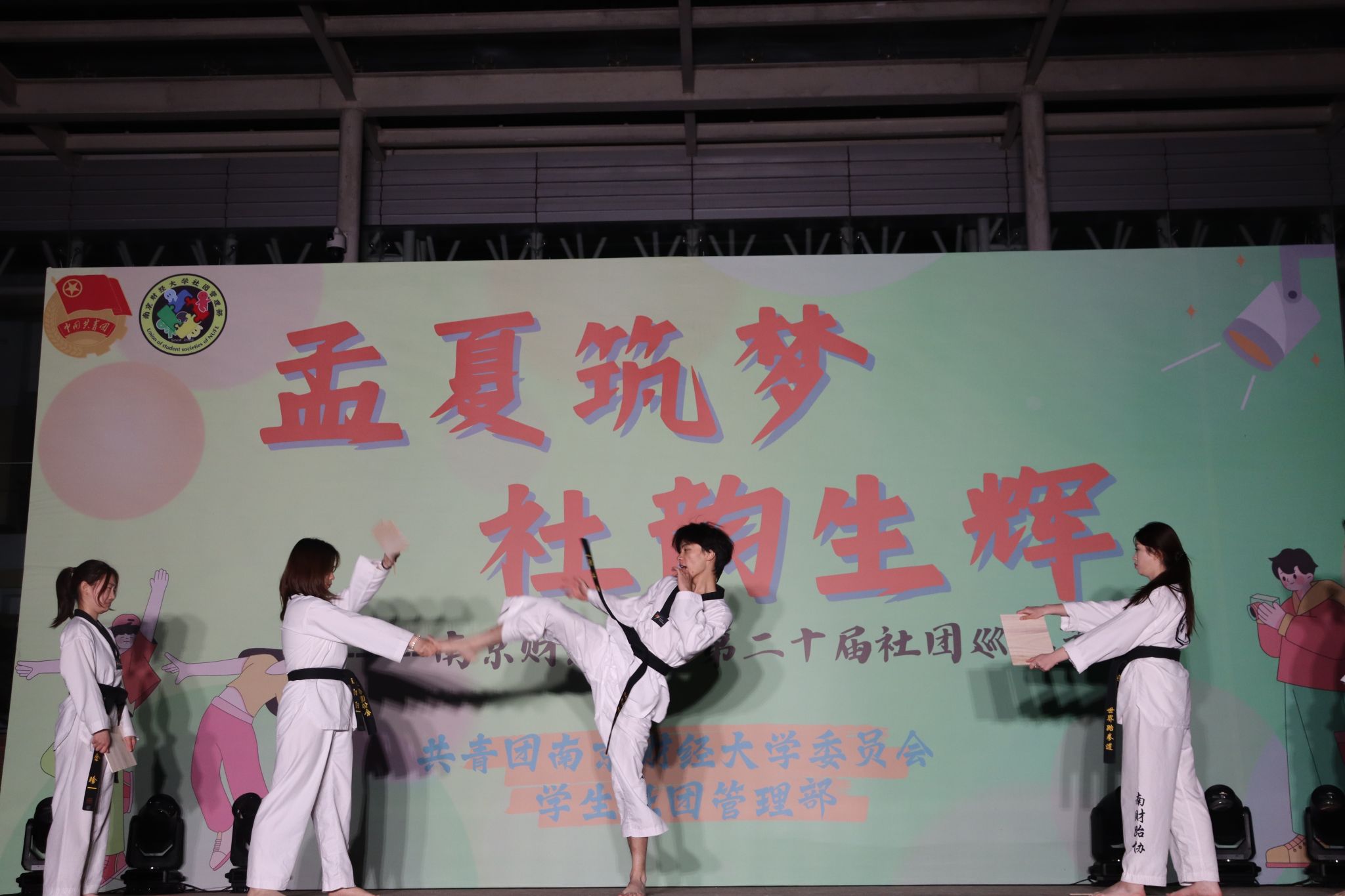 晚会的舞台表演将活动推向高潮,各社团以精心准备的表演为现场观众带来了一场视听盛宴。寒舞纪街舞社以《Black Widow》点燃开场,凌厉舞步勾勒暗夜锋芒;扬子文学社通过朗诵《遇见》,讲述温情故事;跆拳道协会的《冲破穹顶》则以高难度特技彰显热血本色……晚会期间,校团委副书记胡新蕲、校团委副书记(挂职)张鹏岩等为五星级社团授予流动锦旗,为表现突出的社团和优秀社团工作者颁发荣誉证书。