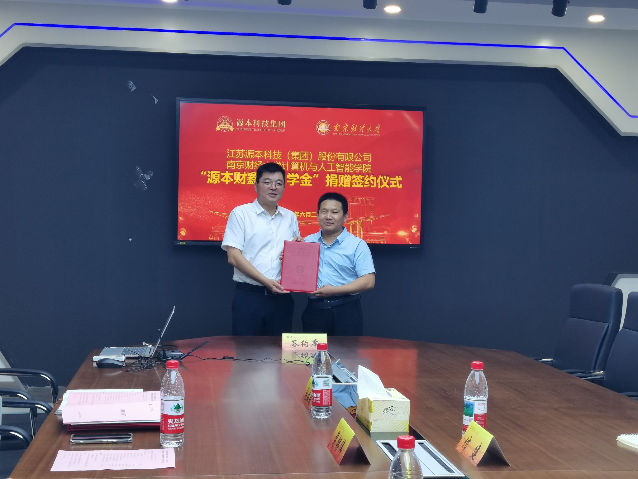 为深化校企合作,助力学生发展,6月20日下午,计算机与人工智能学院在仙林校区德业楼211会议室举行“源本财鑫奖助学金”捐赠签约仪式。江苏源本科技(集团)股份有限公司董事长张福德、总经理唐佩、校企合作总监徐敏博、区域总监赵佳、咨询总监付建、市场总监张慧娟,金年会对外联络处处长陆明峰、副处长裴银伟,以及计算机与人工智能学院领导和师生代表参加捐赠签约仪式。仪式由学院党委副书记马健主持。