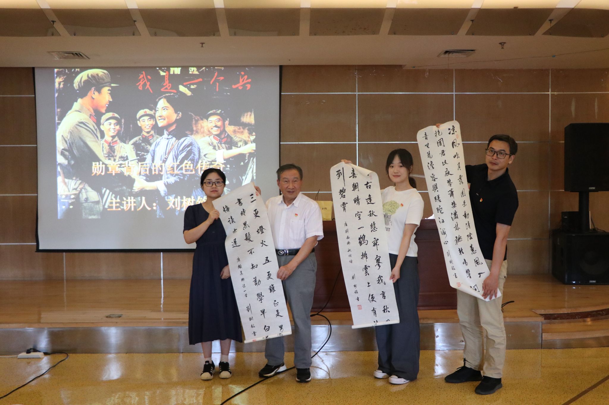 图书馆邀请金年会老党员刘树铭讲授“我是一个兵——勋章背后的红色传奇”主题党课。图书馆全体党员和部分馆员代表,档案馆党支部、保卫处党支部、梅西学院师生党员代表共听党课。刘树铭老师结合自身经历,讲述了一个老兵的战斗经历以及和平年代在平凡岗位上作贡献的鲜活案例。刘老还向现场提问的师生赠送了亲笔题写的书法作品。党课结束后,举行了刘树铭老师《铭记实录集》馆藏捐赠仪式。