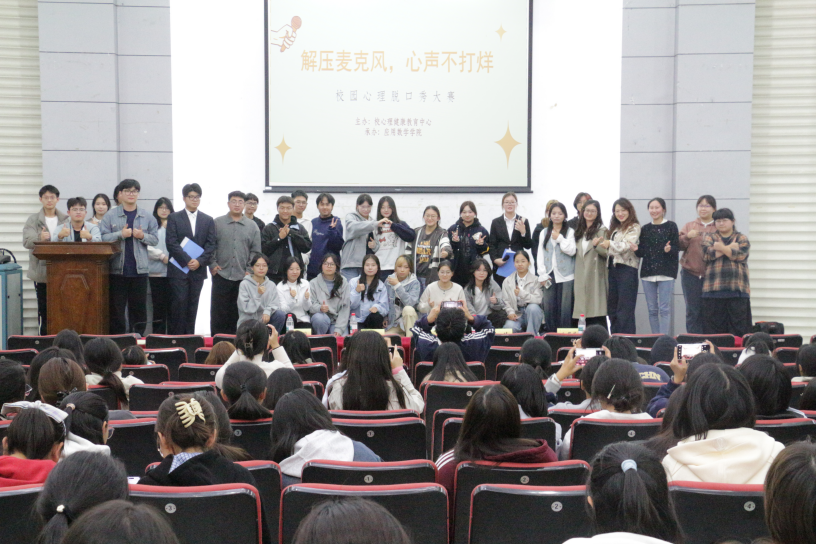 为进一步丰富校园文化生活,创新心理健康教育活动路径,10月20日晚,金年会在仙林校区德经楼报告厅举办“解压麦克风,心声不打烊”校园心理脱口秀大赛。校心理健康教育中心李喆君、专职心理咨询师吴琦,应用数学学院心理辅导员温娇、学生代表彭阔及上届心理脱口秀特等奖获得者王尹萱担任评委。来自8个学院的13支队伍同台竞技,用幽默解读青春,为现场百余名师生带来一场笑点与温度并存的语言盛宴。