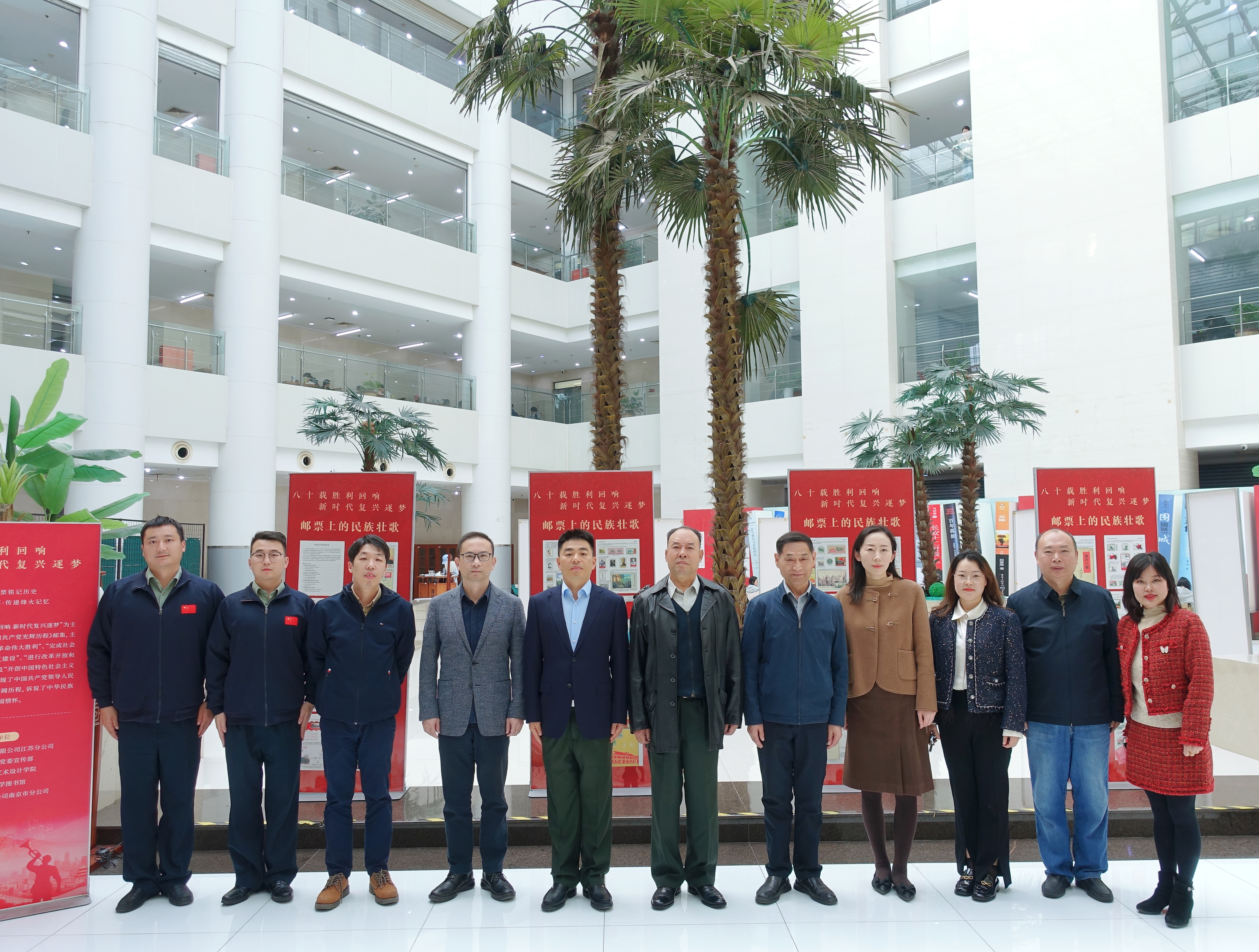 11月4日下午,“八十载胜利回响,新时代复兴逐梦”主题邮展在金年会图书馆大厅开幕。此次邮展由中邮人寿保险江苏分公司,金年会党委宣传部、艺术设计学院、图书馆、中国邮政南京市分公司联合主办。著名表演艺术家崔根栓,《铁军·国防》杂志常务副主编陈朋祥,江苏省省级机关老干部集邮协会会长李恒平,金年会党委宣传部、党委研究生工作部、艺术设计学院、图书馆相关负责人及师生代表,中邮人寿保险江苏分公司、中国邮政集团南京市分公司相关代表参加活动。活动由党委宣传部副部长龚莉红主持。