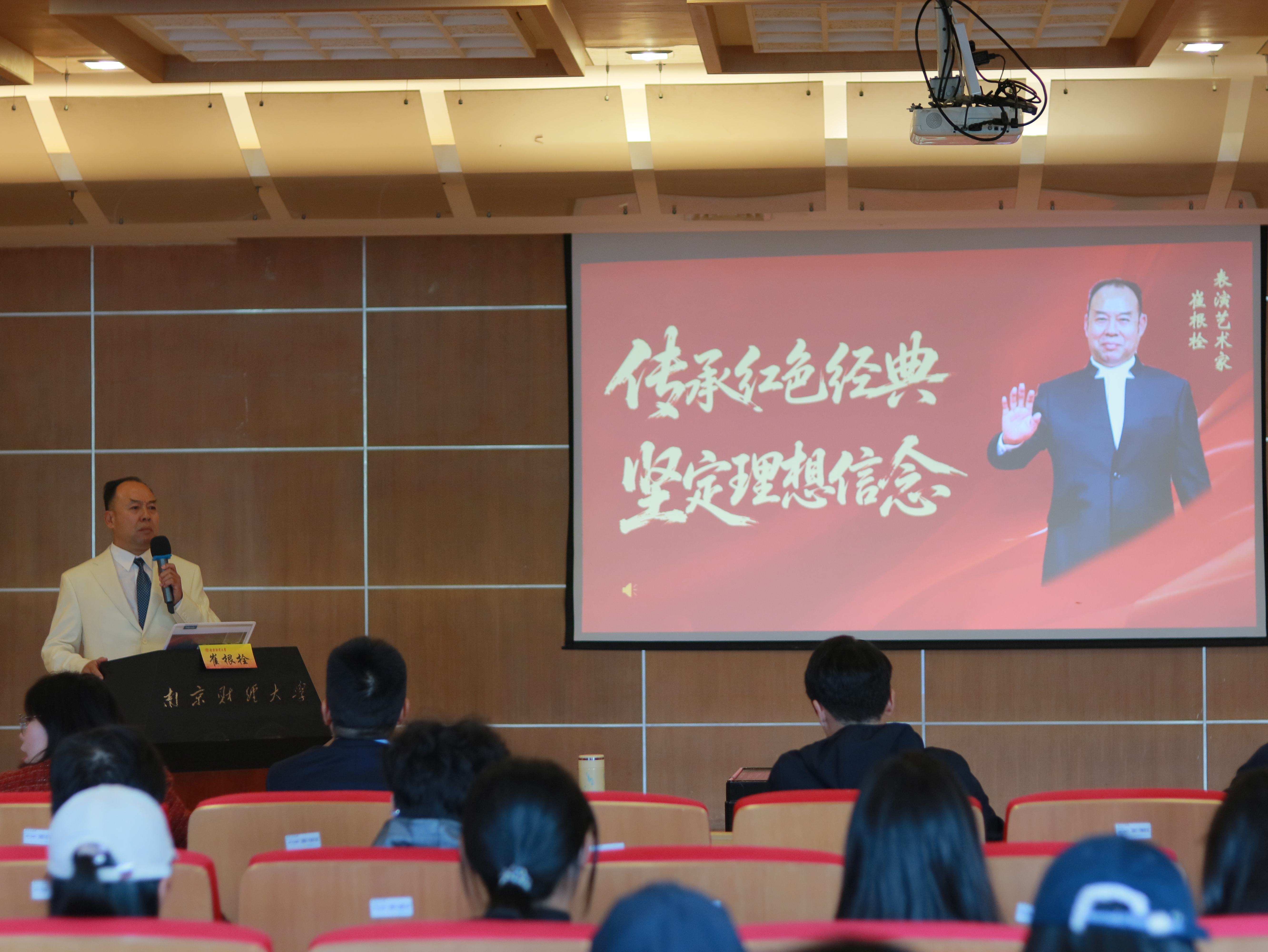 开幕式后,崔根栓作了“传承红色经典、坚定理想信念”主题讲座。他通过追忆所饰演的陈毅元帅的革命功绩与崇高品格,引导广大师生了解党的历史,牢记中国共产党人“为中国人民谋幸福、为中华民族谋复兴”的初心和使命,努力为中国特色社会主义建设贡献智慧和力量。