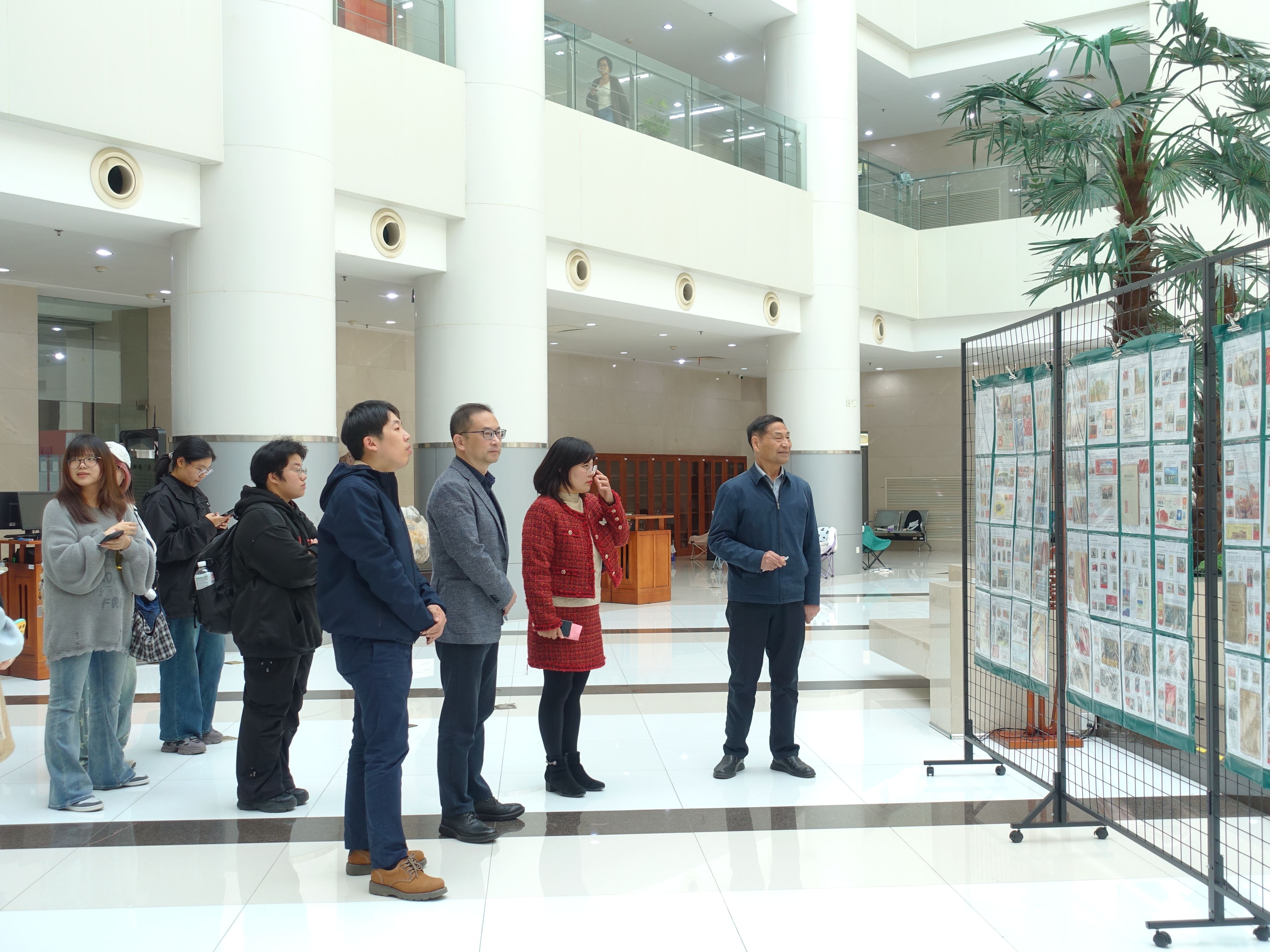 邮展围绕“八十载胜利回响,新时代复兴逐梦”主题,特别展出《中国共产党光辉历程》邮集,主要分为“夺取新民主主义革命伟大胜利”“完成社会主义革命和推进社会主义建设”“进行改革开放和社会主义现代化建设”以及“开创中国特色社会主义新时代”四个篇章,生动再现了中国共产党领导人民为民族解放浴血奋战的壮阔历程,诉说了中华民族永不磨灭的革命记忆和爱国情怀。开幕式上,江苏省省级机关老干部集邮协会会长李恒平,通过展出的红色邮票,为在场师生们讲述了中国共产党的光辉历程,特别是党的十八大以来,以习近平同志为核心的党中央带领全国人民取得的辉煌成就。