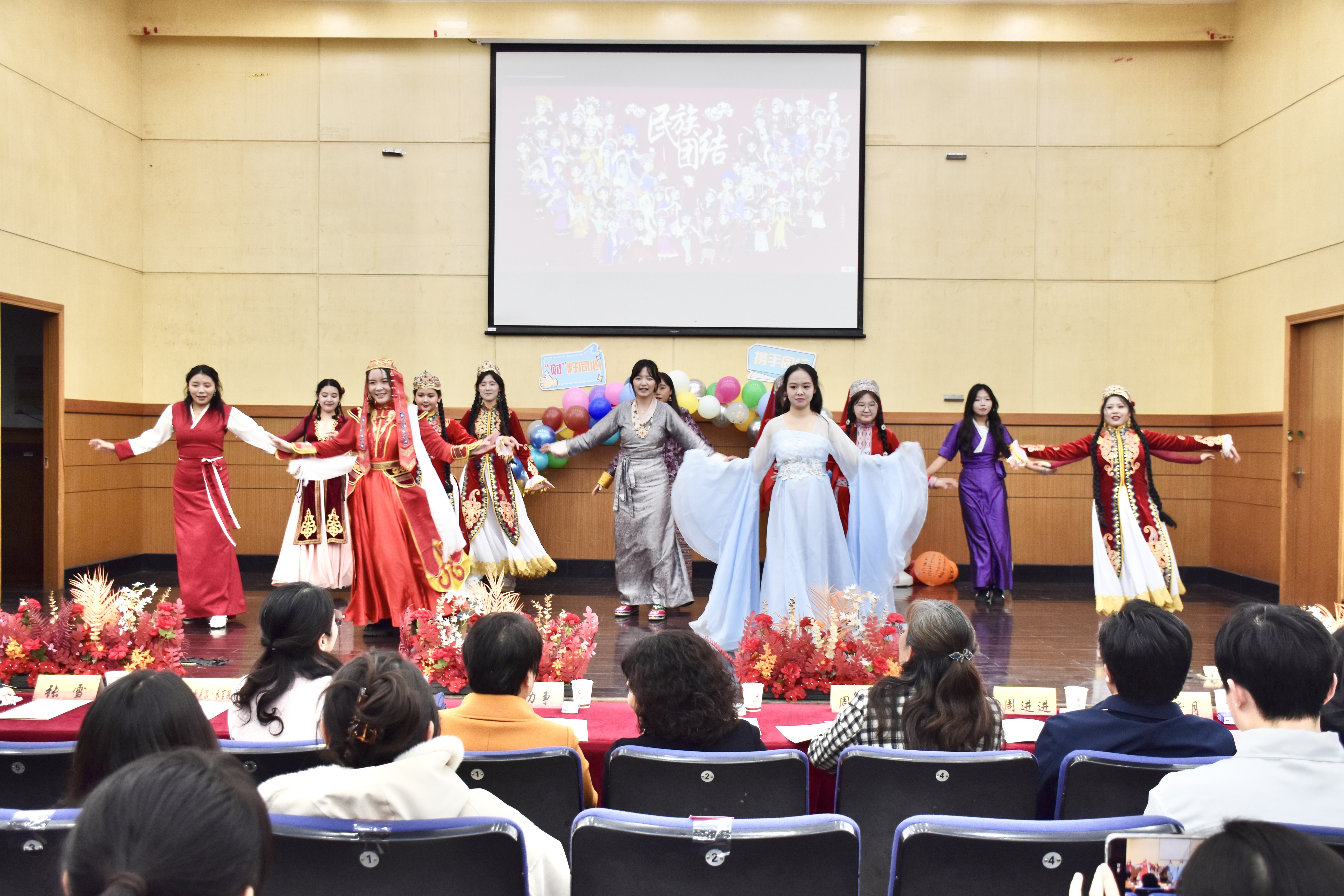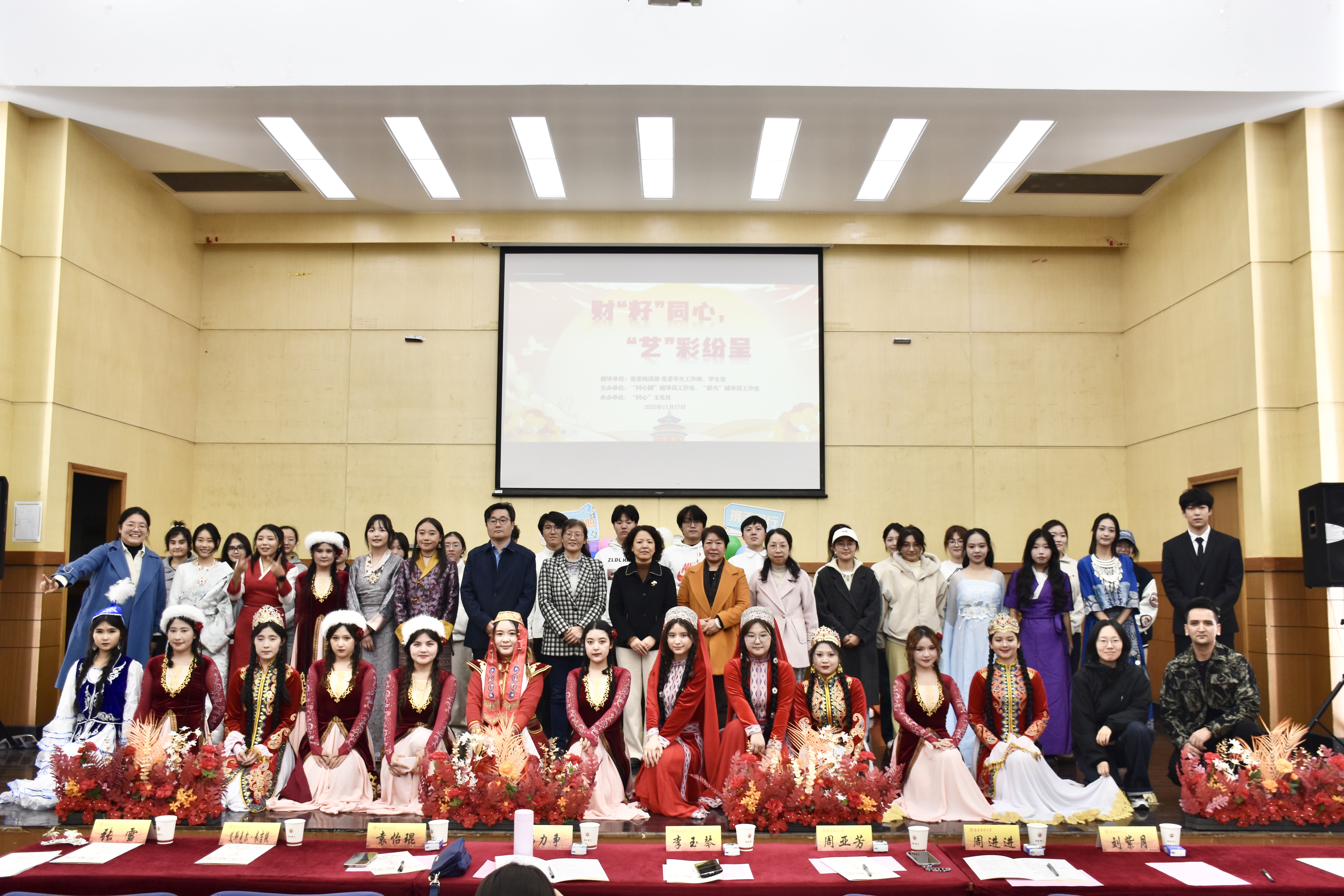 11月17日晚,由金年会党委学生工作部主办,“同心圆”辅导员工作室、“薪火”辅导员工作室及“同心”文化社联合承办的“财‘籽’同心,‘艺’彩纷呈”民族团结主题展评会在仙林校区德济楼报告厅举行。党委常委、统战部部长李玉琴,党委学生工作部部长、学生处处长韩力争,国际经贸学院党委书记周亚芳,学生处副处长袁怡琨,国际经贸学院党委副书记周进进等领导参加活动,与各族师生欢聚一堂。