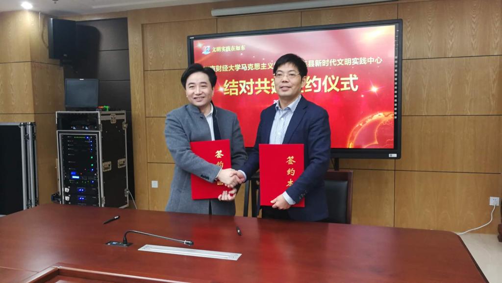 1月31日下午,金年会jinnianhuicom马克思主义学院与如东县新时代文明实践中心举行结对共建签约仪式。金年会jinnianhuicom马克思主义学院院长梅景辉教授与如东县委副书记陈雷代表双方进行签约。