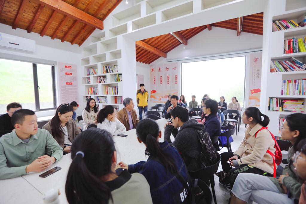 随后,师生走访了西岗街道桦墅村,并与村干部进行了座谈和交流。西岗街道桦墅村党总支书记蔡云围绕“党建+科技引领”“党建+乡村建设”“党建+乡村治理”“党建+互联网”“党建+阵地建设”五个方面介绍了乡村发展的特色。他指出,农村广阔天地,青年大有作为,青年学生要坚定理想信念,做新时代的追梦人。会计学院党委副书记刘颖介绍了“青年红色逐梦之旅”活动的目的和主要内容,希望同学们了解国情民情,在创新创业中增长智慧才干,用创新创业成果服务乡村振兴战略。会计学院汪振坤老师将创新创业融入乡村建设,对美丽宜居乡村建设提出了建议。