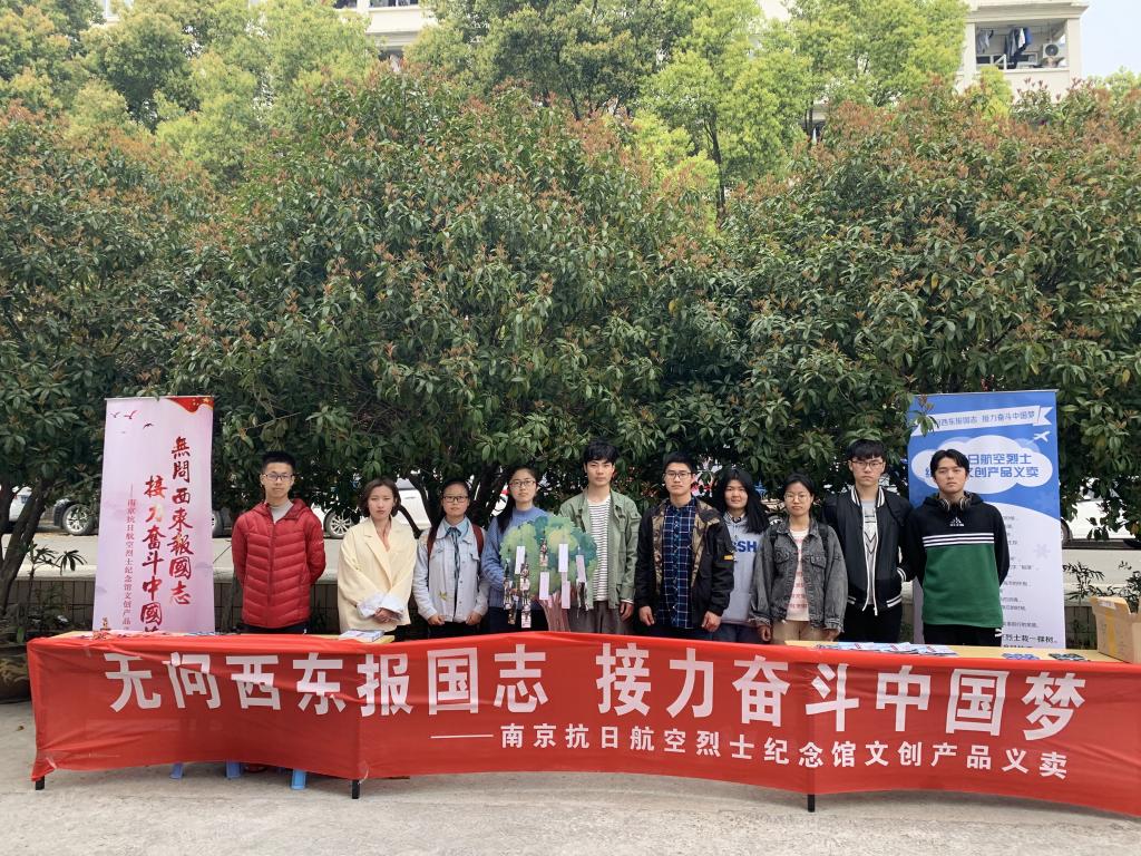 应用数学学院和财政与税务学院联合举办了一场特殊的义卖活动。同学们义卖的物品都来自南京抗日航空烈士纪念馆,是一批以抗日航空为主题的系列文创产品,印有飞虎队徽章、鲨鱼战斗机的冰箱贴、抗日航空英雄的书签套装等等,现场吸引了众多师生驻足。这是金融数学1802和税收1801两个团支部共同举办的义卖活动,同学们将用筹款所得为南京抗日航空烈士公墓栽上一棵树。“‘我为烈士挡风遮雨’清明节文创产品义卖活动参与的青年学子既是思政课的讲授者,也是这堂课的受教者。一买一卖之间,传递的是对革命先烈的缅怀与敬仰,启发的是当代青年的责任与担当。可以说,这不仅是一场有意义的清明节纪念活动,更是一堂别开生面的思政课!”应用数学学院党总支副书记张杰表示,将传统节日等巧妙结合进思政教育会达到非常好的效果。财政与税务学院党委副书记李慕原表示,“在清明临近之际,组织学生以实际行动祭奠英烈,致敬英雄,这是开展思政教育的重要节点,也是把思政课堂搬到实践中,搬到学生日常生活中的举动。思政教育不是简单的说教,它是润物无声的,大一是大学生活中开展理想信念教育的重要阶段,让学生在身体力行中接收爱国主义教育,厚植他们的爱国主义情怀。这是我们举办此次活动的初衷。”