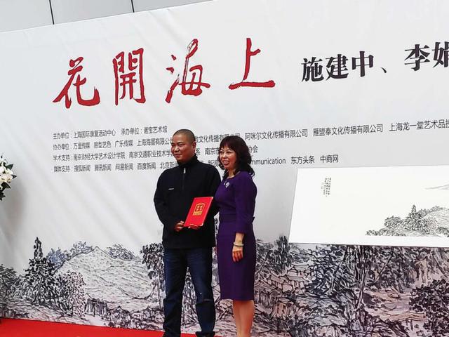 4月13日,金年会艺术设计学院副教授施建中在上海诺宝艺术馆举办主题为“花开海上”的国画作品展,来自江浙沪的文化、教育、美术、收藏与企业界相关人士及书画爱好者共百余人出席展览开幕式并观展。