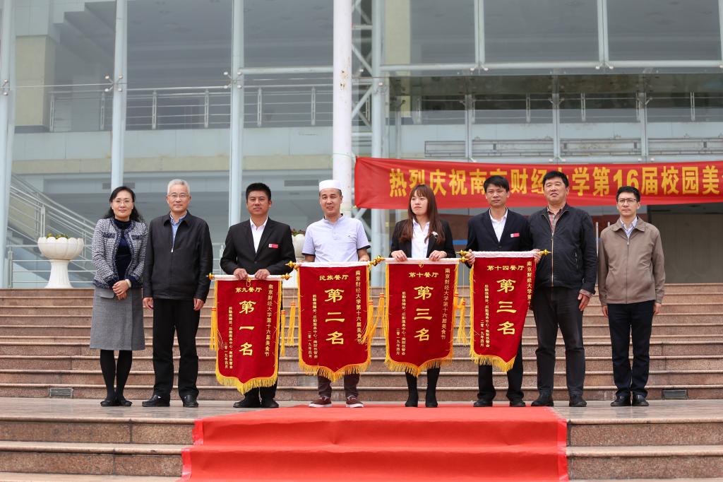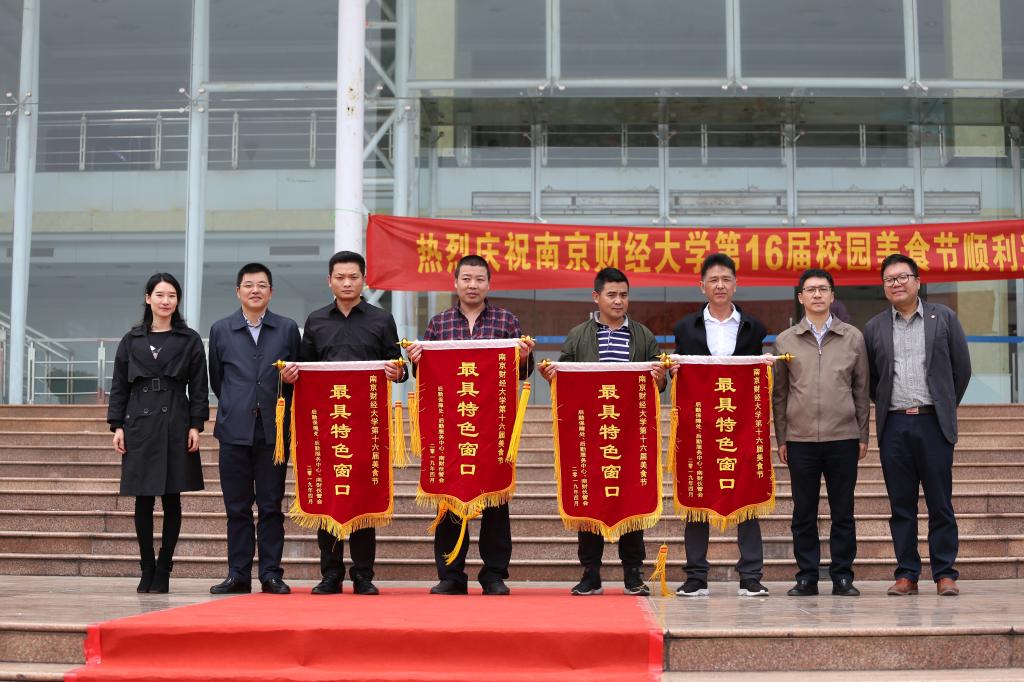 现场领导为在本届校园文化美食节活动中涌现出的优秀团队颁发“最受欢迎的窗口”和“最具特色的窗口”奖项。另外,经过综合评选,九餐厅获得“最受欢迎的食堂”第一名,民族餐厅获得第二名,十餐厅、十四餐厅获得第三名。