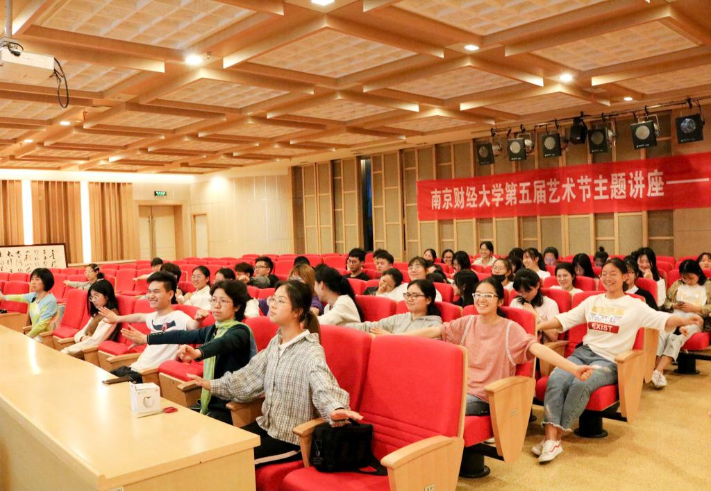 讲座由财税学院党委副书记李慕原主持,主讲人王斌是江苏省演艺集团歌剧舞剧院艺术指导,原任昆剧院副院长,导演,国家一级演员,国家文华导演奖得主。他在讲座的一开始,便将昆曲的欣赏心,归结为“拿得起,放得下,想得开”三大要素,强调应通过这种欣赏心升华审美,敏锐感知。随后,他就“不到林园,怎知春色如许”这句词示范表演,赢得现场观众的掌声与喝彩。为了使在座师生理解昆曲程式,王斌老师以动漫视频“粉墨宝贝”形式为大家介绍了生、旦、净、末、丑,并亲自示范四功五法。并邀请助演嘉宾施立群老师合作演唱牡丹亭,歌声余音绕梁将现场气氛推向高潮。王斌老师表示:“舞台源于生活。在扮演各色角色后,我才明白,生活中不必纠结于开心与难过,加强自身对抗负情绪的能力来营造美好的生活环境才尤为重要。”