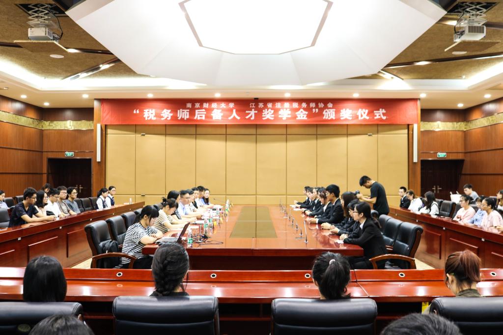6月18日下午,财政与税务学院在仙林校区工科楼二楼会议室举行2019年度“税务师后备人才奖学金”捐赠暨颁奖仪式。江苏省注册税务师协会会长周苏明、副会长于阜宁、办公室副主任徐华敏,金年会对外联络处副处长王冲、财税学院领导及师生代表参加仪式。仪式由财税学院党委副书记李慕原主持。