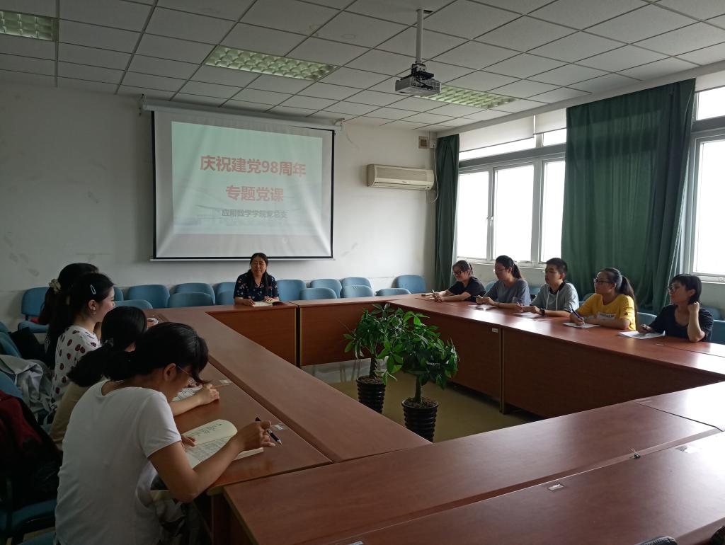 为庆祝中国共产党成立98周年,共同重温党的历史,感怀党的丰功伟绩,进一步坚定跟党走的信念,不断提高学生党员的思想觉悟,6月30日,应用数学学院学生党支部在仙林校区德业楼精心开展了“七个一”系列活动。