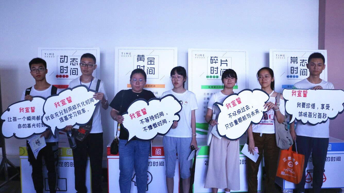 财政与税务学院开设了“时间分类”的新生必修课。“课堂”就设置在迎新现场,新生来报到时一眼就可以看到四个颜色的时间箱并排摆放,分别写着“常态时间”“动态时间”“黄金时间”“碎片时间”,现场还有小老师进行讲解,“碎片时间,比如像等车、排队等餐,我们常用这个时间来处理一些小事情,处理邮件、背一两个单词等等。”新生会在现场进行“课堂小练习”,把抽取到的日常行为放到正确的时间类别里。最后,每名新生都会领到“课后作业”——一本时间管理手账,要求新生将时间分类法学以致用,并且根据时间管理效率计算并足额缴纳“时间税”,定期自省时间管理成效。