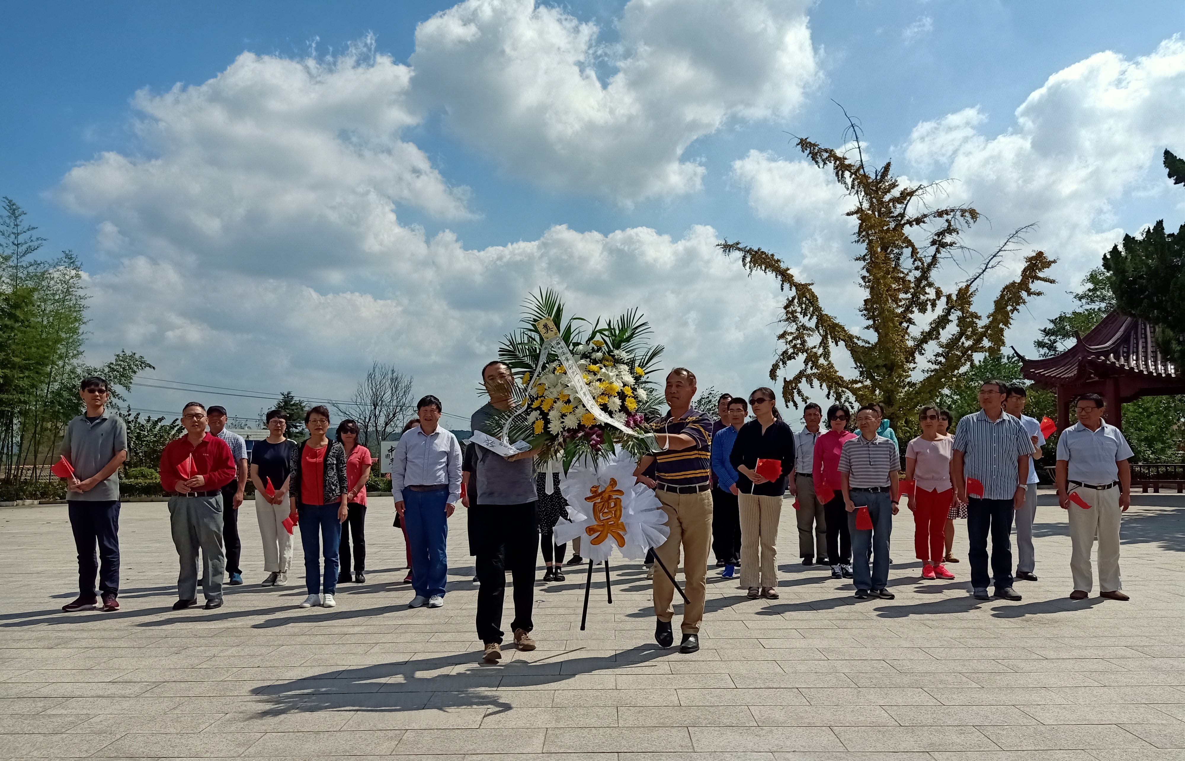 党派成员在烈士纪念碑下举行了悼念仪式并敬献花篮