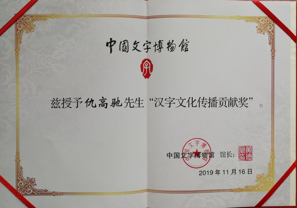 金年会教授仇高驰获“汉字文化传播贡献奖”