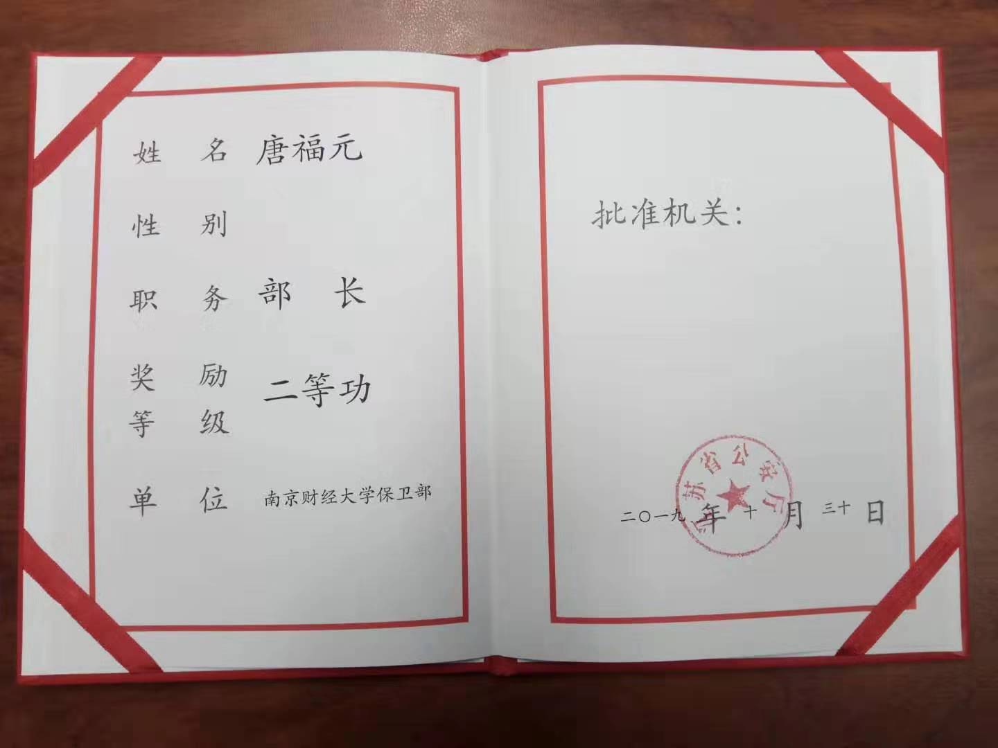 党委保卫部部长唐福元获江苏省公安厅个人二等功