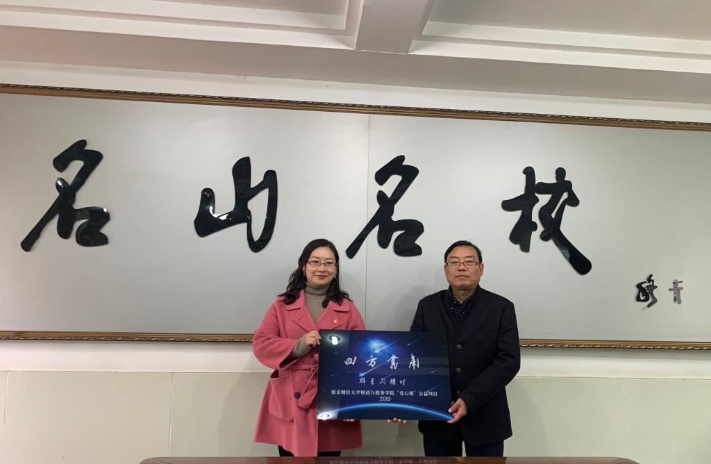 随后,李慕原副书记代表学院向浮山中学捐赠图书,并授牌“四方书角”。据悉,四方书角是财税学院品牌志愿服务活动“爱心税”的子项目,该活动连续多年由学院获得各类奖助学金的同学们“缴纳”奖助学金的一部分(不超过8%)组成“爱心税”,用以帮助偏远地区的贫困学子。今年,四方书角项目以“群星闪耀时”为主题,为浮山中学捐赠名人传记类图书800余册。