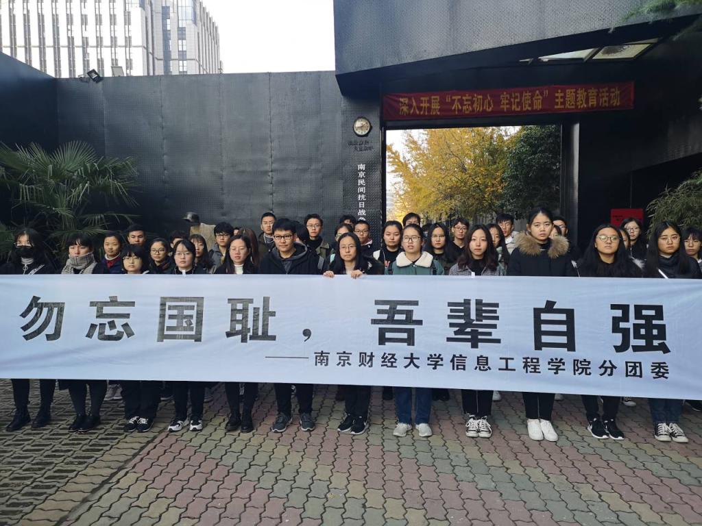 12月8日上午,信息工程学院的同学们前往南京民间抗日博物馆进行参观学习,博物馆内大量史实资料真实再现了人类历史上那段无法忘却的浩劫,大家深受震撼。当天晚上,学院青马班成员与全体大一新生在仙林校区博观楼302教室集体观看了纪录片《莫忘国殇:南京大屠杀实录》。纪录片真实记载了南京大屠杀中三十多万同胞被杀戮的残忍经历,看过的人无不深感战栗。纪录片结束后,同学们情不自禁挥臂高呼:勿忘国耻,吾辈自强;勿忘国耻,振兴中华!软件1701班刘家桐表示,过去,敌人肆意践踏我们的尸体;今天,每一个中国人都不会允许这样的历史再重演。生活在新时代的青年学生更加需要勿忘国耻,自立自强,刻苦学习,奋发有为,为中华民族的伟大复兴而努力奋斗!