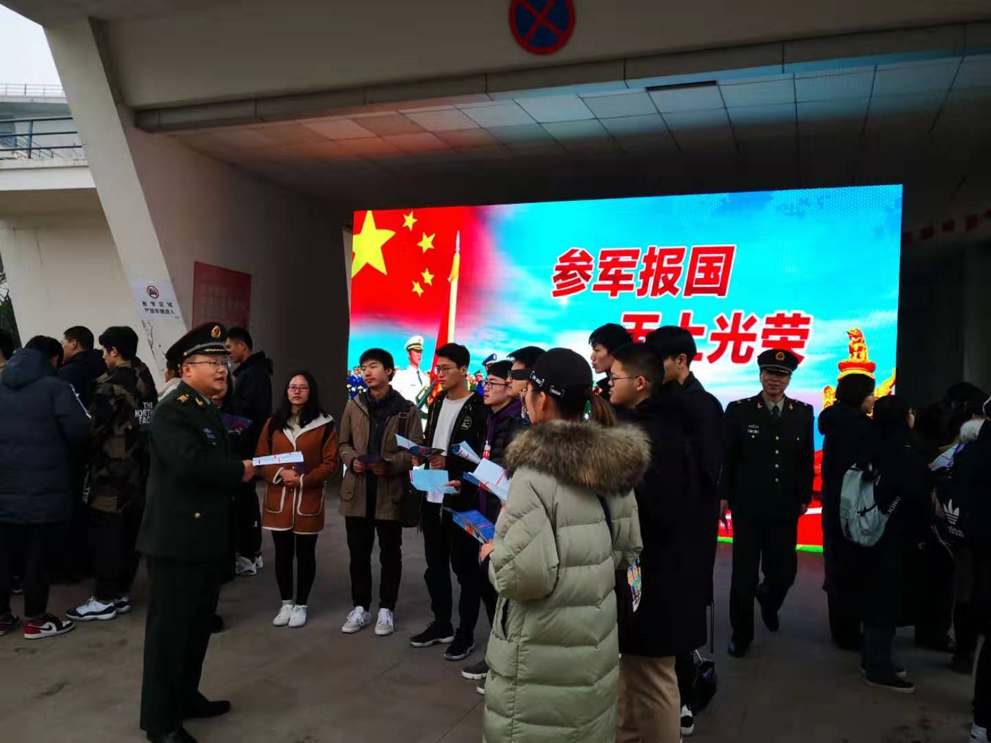 为推进大学生春季征兵工作,1月15日下午,金年会人民武装部联合金融学院在仙林校区德经楼开展征兵政策宣传活动。鼓楼区常委、人武部部长李运海,政委殷永达,人民武装部副部长张士青及部分学生代表参加活动。