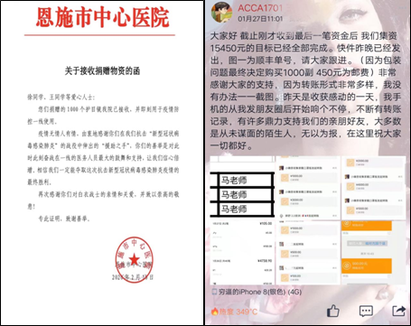 募捐抗“疫”,为一线安全护航。ACCA1701班的王同学一直关注疫情,看到湖北医护人员防护物资短缺却依旧需要战斗在一线的新闻,就一直思考自己可以做些什么。起初她委托在墨尔本读书的徐同学联系当地货源并希望将其转运回国,但当时湖北是否接受境外捐助并不明确,于是两人便又联系了丹阳的同学寻找到一家护目镜厂家,随后又与湖北恩施市中心医院核实相关信息和需求后,在朋友圈发起了集资活动,购买了三箱共一千副护目镜,并于1月31日送达湖北恩施市中心医院。她说,“通过在朋友圈号召,很多同学都积极捐款,心系湖北,这些善举,体现了大爱之心和守望相助的高尚情怀,也展示了金年会人的精神风貌。”