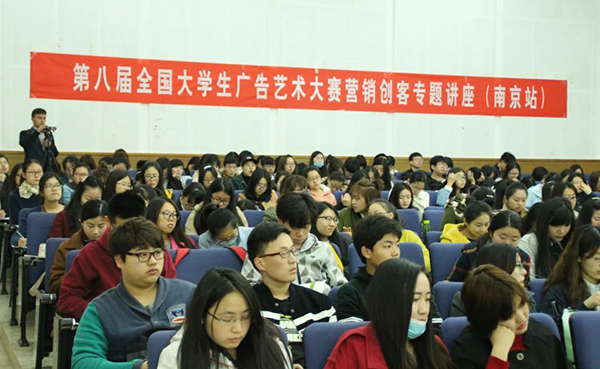 讲座前,姚杰副主任介绍了第八届全国大学生广告艺术大赛的主题“创意我出彩”以及本届大赛新增加的营销创客类赛制。