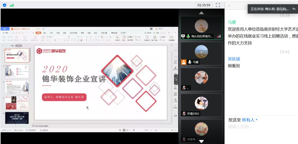 本次线上双选交流会采取了企业线上宣讲与交流互动、学生线下投递简历的形式。交流会上,参会企业分别围绕各自的企业文化、业务发展、公司福利待遇、员工职业发展愿景等进行了详细的介绍,为参会学生提供百余个就业、实习岗位,涵盖室内设计、平面设计、文化传媒、文案策划、动漫影视等。参会的同学认真聆听企业的介绍,并不时与企业负责人进行线上交流与互动,积极寻求就业、实习机会。